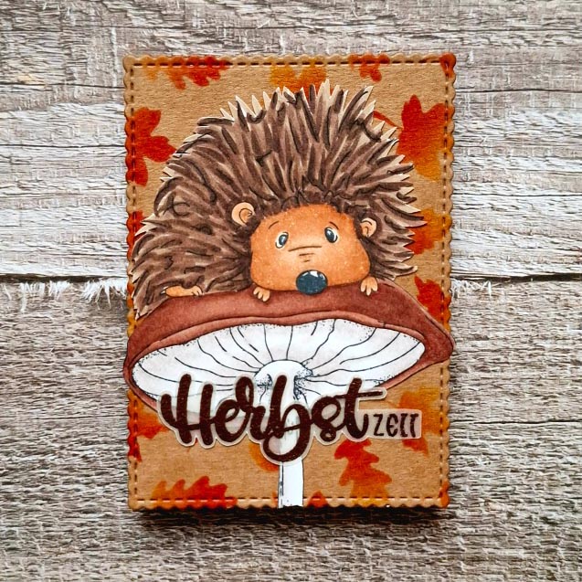 Im 9. Türchen befindet sich ein Lettering-/Textset für den Herbst und Winter. Anna (@creative.anna) hat damit eine ATC gebastelt, auf der sie den Igel aus "Sweet Mushroom Hedgie" (Artikel-Nr. 00110019) mit dem Wort Herbstzeit kombiniert hat. Den ATC Rohling hat sie mit dem Stanzenset "Victorian Dreams - Artist Trading Card Folder" (Artikel-Nr. 00101903) gestanzt.