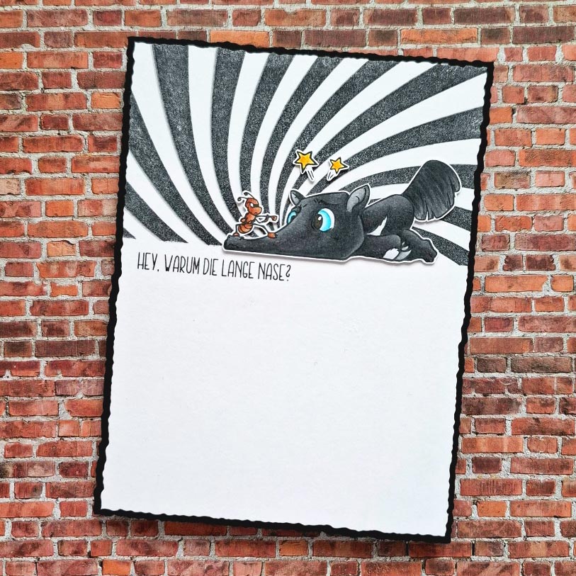 Tütchen Nr. 13 enthält eine Ameise, die dem Ameisenbären zeigt, wer das Sagen hat. Für den Hintergrund hat Anna (@creative.anna) passend dazu den Stempel “Cosmic Swirl” (Artikel-Nr. 0011997) verwendet. Für die rauen Kanten hat sie den “Deckle Torn Edge Trimmer” (Artikel-Nr. 00074001) benutzt.