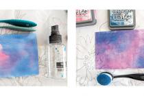 Gebt hier etwas Farbe direkt vom Stempelkissen auf euer Papier. Mit einem feuchten Tuch, könnt ihr die Farbe ganz leicht verwischen und sehr schöne Verläufe erstellen.