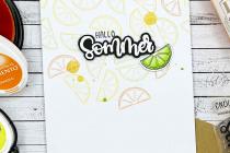 Türchen Nummer 1 hat bei Lisa (@catsndcrafts) gleich jede Menge Inspiration losgetreten – zum Beispiel die Idee für diese schnelle sommerliche Karte. Für den Hintergrund hat sie sich Zitronen, Limetten und Orangen aus dem Stempelset "Coole Socke Fips" (Artikel Nr. 00091471) ausgeliehen.
