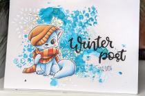 Passend zur süßen Polarfüchsin Auri (Artikel-Nr. 00121721) hat Anke (FB: Zwischen Farbe und Wort) im Hintergrund ein Schneegestöber geschaffen. Zum einem mit dem Schneestempel aus dem heutigen Adventskalender-Türchen (Artikel-Nr. 00117820), zum anderen mit Schablone und Halo Paste (Artikel-Nr. 00096565) auf einem Aquarelluntergrund. Noch eine kleine Botschaft dazu (Artikel-Nr. 00121723) – fertig.