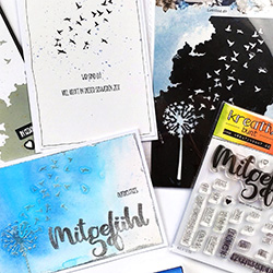 Mit Schablonen lassen sich wunderbare Karten gestalten. In diesem Video zeigt Anke euch, wie ihr mit Pasten, Aquarellfarben, Stempelkissen, Aquarellstiften, Alkoholmarkern, Buntstiften und Finelinern mit einer Schablone ganz unterschiedliche Effekte erzielen könnt. Selbst für so ein schwieriges Thema wie Trauerkarten eignen sich diese Techniken!