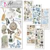 Vintage Kollektion zum Thema Reisen mit hübschen Szenen und Motiven wie Züge, Ferngläser, Karten und Blumen in den vorwiegenden Farben Blau, Gelb, Creme und Braun.