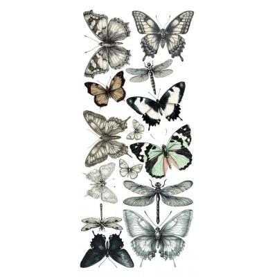 Tinte, Schrift und Vintage - mit diesen drei Begriffen lässt sich diese Kollektion gut beschreiben. Die monochrome Anmutung von Tusche verleiht den Motiven wie Schmetterlingen, Blumen, Buchstaben, Schreibutensilien und Frauen das gewisse Etwas.