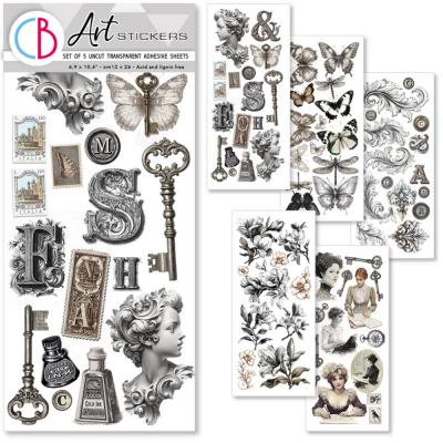 Zum Verzieren von Alben, Karten, Mixed Media Projekten und vielem mehr. Bei den Stickern handelt es sich um ungeschnittene, transparente, klebende Bögen.
