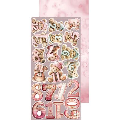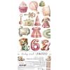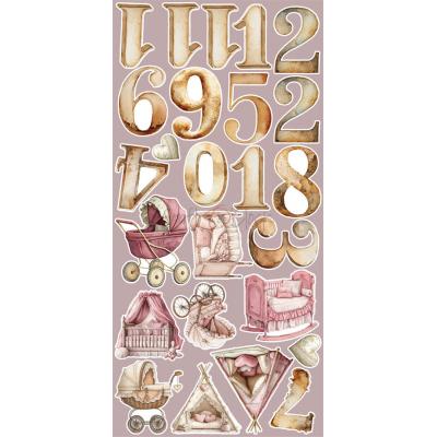 Hübsche Kollektion zum Thema Babys und kleine Mädchen. Mit niedlichen Tiermotiven, Zahlen, Blumen und Baby Accessoires in den Farben Rosa, Grün, Rot, Gold, Braun und Weiß.