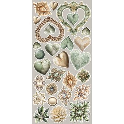 Eine romantische Kollektion mit vielen Motiven rund um das Thema Liebe und Hochzeit, in den Farben, Beige, Grün, Blau und Braun.