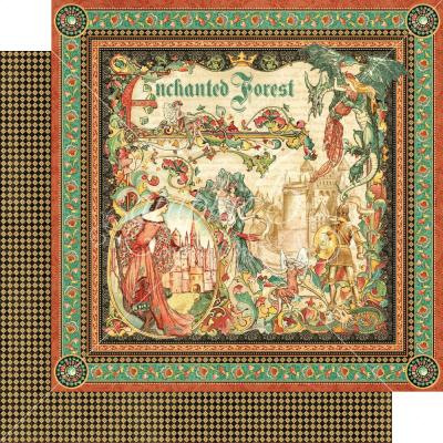"Enchanted Forest" ist eine Kollektion von Graphic 45. Man wird mitgenommen in eine fantastische Welt voll mit Drachen, Feen, Märchenschlössern, Rittern, Prinzen und Prinzessinnen. Dazu kommen viele schöne Muster. Alles ist in den Farben Grün, Creme, Orange und Braun gehalten.