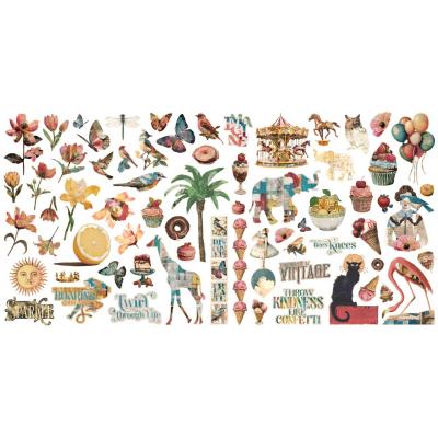 Bunt und etwas surreal kommt die Kollektion "Journaling Through Time" von Graphic 45 daher. Viele Tiere, Blumen, Figuren und Leckereien sowie passende Texte sind phantasievoll gestaltet.