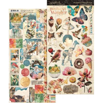 Bunt und etwas surreal kommt die Kollektion "Journaling Through Time" von Graphic 45 daher. Viele Tiere, Blumen, Figuren und Leckereien sowie passende Texte sind phantasievoll gestaltet.