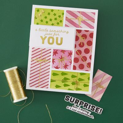 Passend zu der Stanze "Gift Boxes" (Artikelnummer: 00123717) sowie den Layering Stencils "Gorgeous Giftwrap" (Artikelnummer: 00123714).