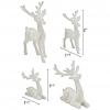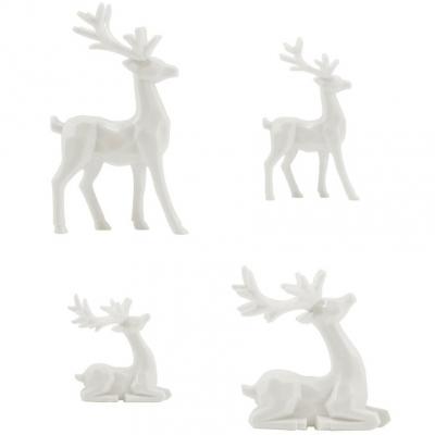 Das Set enthält 4 weiße Rentiere aus Kunstharz in verschiedenen Posen.