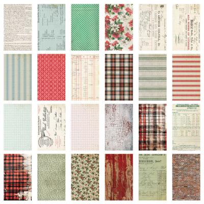 Im Vintagestil gehaltenes Designpapier mit Schriften, Blumen, Mustern, Grafiken und vielem mehr.