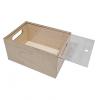 Aufbewahrungskiste aus Holz mit Plexiglas-Schiebedeckel.