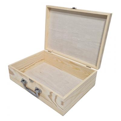 Koffer mit Metallgriff, aus Kiefernholz.