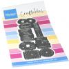 Zur Verwendung der bei uns erhältlichen hochwertigen Stanzschablonen wird eine Stanz- und Prägemaschine (bspw. Sizzix BigShot) benötigt. Die Metallstanzen werden gemeinsam mit Papier durch die Maschine gekurbelt und schneiden dabei die Motive aus dem Papier aus.