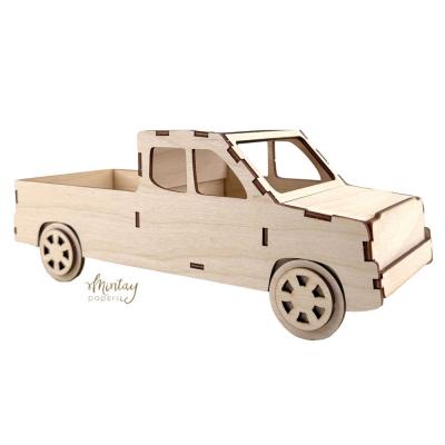Bausatz aus 3mm starkem Sperrholz für ein 15 x 16 x 22cm großes Pick-Up Auto.