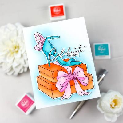 Das Stempelset "Step into Style" (Artikel-Nr. 00127278) stammt von der Designerin Inna Moreva. Passend dazu sind im Shop Outline-Stanzschablonen (Artikel-Nr. 00127277) und Schablonen zur schichtweisen Koloration der Motive (Artikel-Nr. 00127276) erhältlich. Der Stempel ist auch als Press Plate (Artikel-Nr. 00127275) für das BetterPress-System von Spellbinders erhältlich.