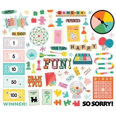 Knallig, bunt und heiter kommt die Kollektion "Game Night" daher. Sie enthält passende Worte, Muster und Motive wie Würfel, Scrabble-Steine oder Schachfiguren, um die Erinnerungen an einen Spieleabend gebührend festhalten zu können.