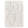Die Moulds sind aus Silikon und können mit vielerlei Materialien wie Ton, Keramik, Heißkleber, Schokolade uvm. befüllt werden. Nach dem austrocknen erhaltet ihr wunderschöne Elemente für die Verzierung, beispielsweise von Mixed Media Werken, Kuchen usw. Die Formen sind lebensmittelecht und
