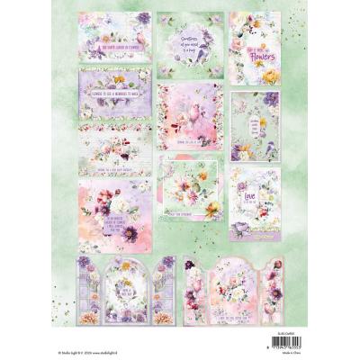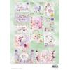 Das Set beinhaltet alles zum Erstellen von 12 Karten. Es gibt 12 Die-Cut Sheets mit vorgestanzten Elementen in einer Stärke von 170gsm und 2 Bögen bedrucktes Papier mit einer Stärke von 250gsm.