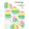 Das einseitig bedruckte Designpapier hat eine Größe von DIN A5 und eine Stärke von 190gsm.