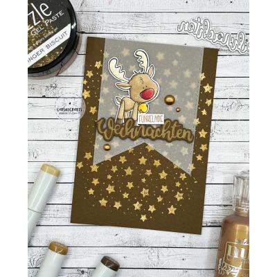 Die äußere Stanzschablone ist gleichzeitig die Outline-Stanze für den Schriftzug der Stanze und den Schriftzug des dazu passenden Stempelsets "Lettering Weihnachtszeit" mit Artikel-Nr. 00120630. Das Stempelset bietet dazu noch