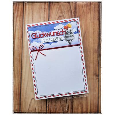 Das passende Stanz-Set "Layered Bitte lächeln" (Artikel-Nr. 00113457) enthält den Schriftzug "BItte lächeln" in gleicher Größe als Stanzschablone sowie die Outline-Stanze für den gestempelten oder gestanzten Schriftzug.