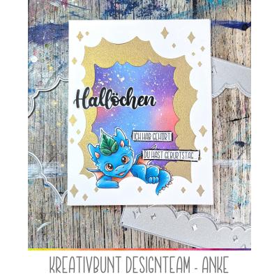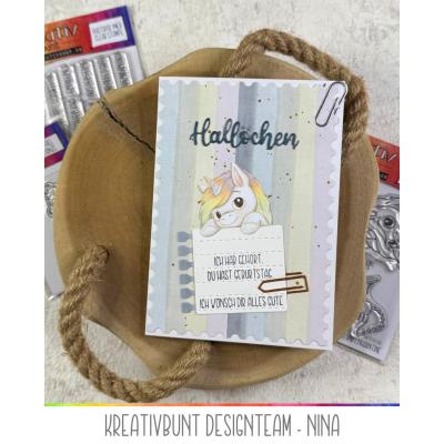 Das passende Stanz-Set "Layered Hallöchen" (Artikel-Nr. 00125174) enthält das Wort "Hallöchen" in gleicher Größe als Stanzschablone sowie die Outline-Stanze für den gestempelten oder gestanzten Schriftzug.