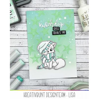 Das passende Stanz-Set "Layered Kuschelige Grüße" (Artikel-Nr. 00122702) enthält die großen Schriftzüge in gleicher Größe als Stanzschablone sowie die Outline-Stanzen für die gestempelten oder gestanzten Schriftzüge.
