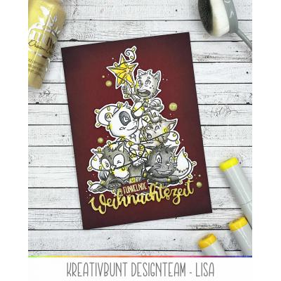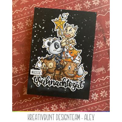 Das passende Stanz-Set "Layered Weihnachtszeit" (Artikel-Nr. 00120631) enthält die Schriftzüge "Weihnachten" und "Weihnachtszeit" in gleicher Größe als Stanzschablone sowie die Outline-Stanzen für die gestempelten oder gestanzten Schriftzüge.